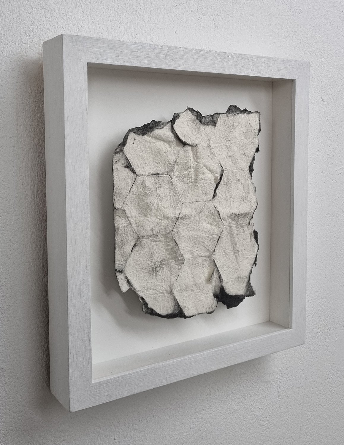 The work is float-mounted in a box-frame (painted wood), behind non-reflective museum glass (fittings attached).